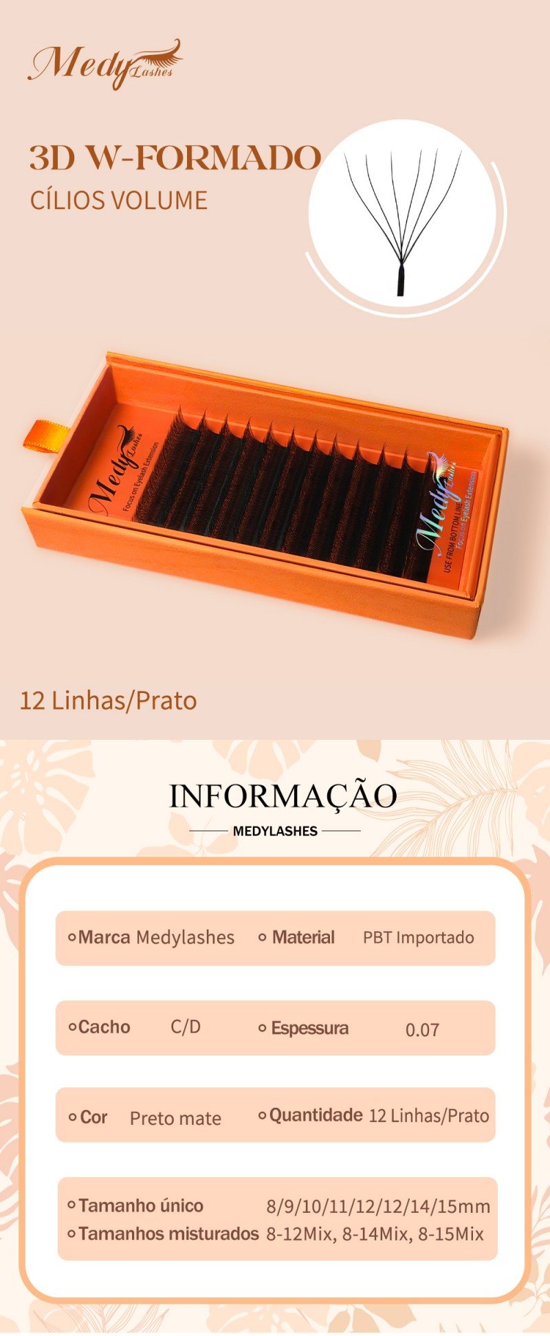 Nome do produto:Extensão de pestanas Medy Lashes 6DW, maquilhagem Dropshipper 6D W, volume pré-fabricado, pestanas postiças, maquilhagem suave